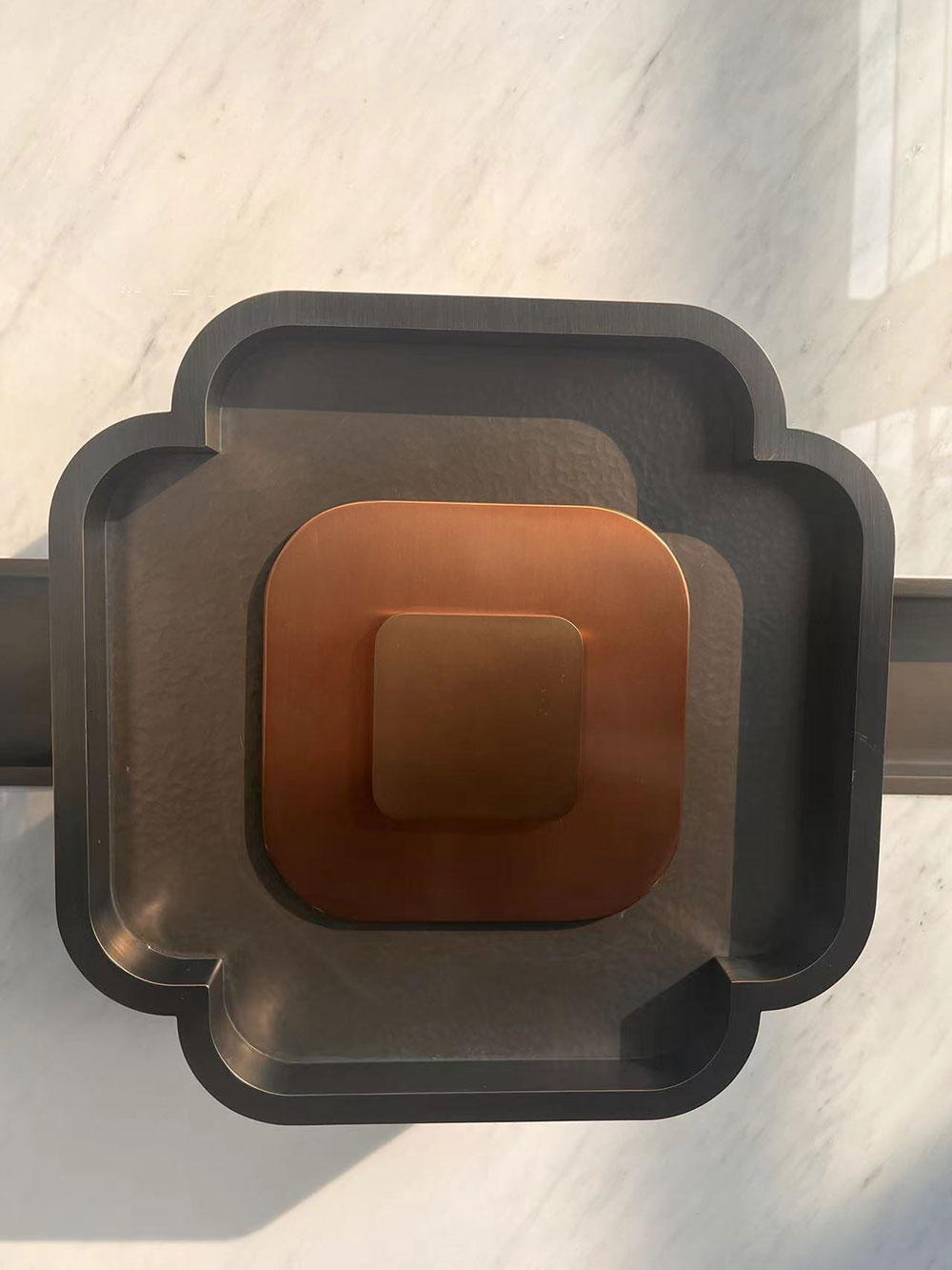 宁海喜来登酒店通过一系列全新升级的品牌特色的设计元素以及采用不锈钢材质设计独树一帜,大堂气势恢宏,一扇接一扇的格栅玻璃,哑光的表面处理,结合灯光,如同山峦叠嶂,投射了《徐霞客游记》开篇对“山”的哲思。