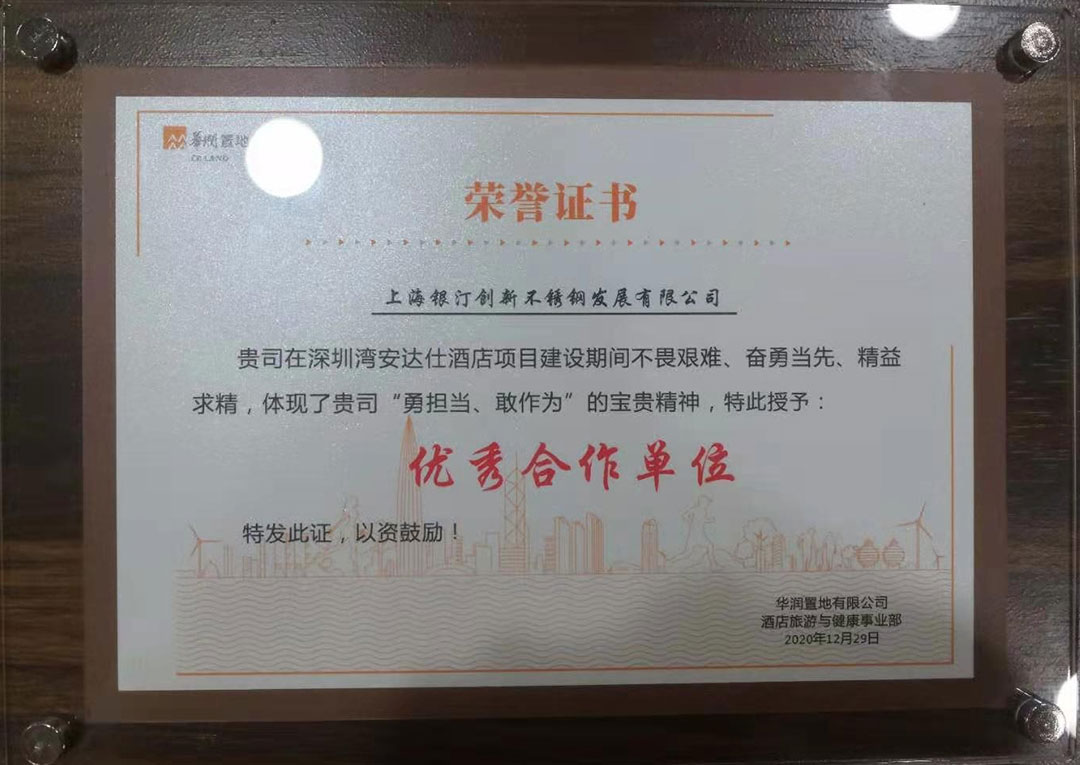 每次不锈钢定制品的加工安装完成,使项目得以如期开业举行,都令我们心潮起伏、热血澎湃,这离不开每个银汀人的辛勤付出,密切配合,这些成果凝结着每个银汀人的心血和汗水,彰显了不同凡响的银汀风采。这一年我们收获了更多的肯定与赞扬,载誉而归。